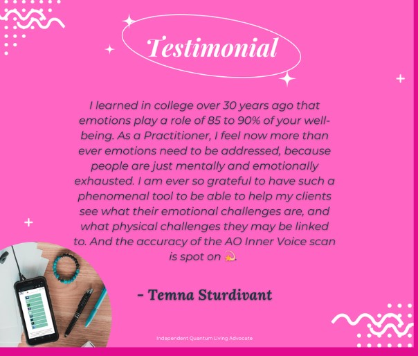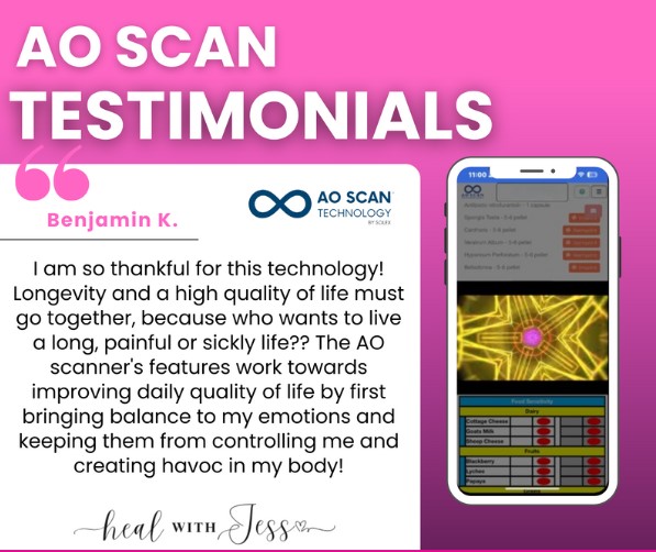 I am Jessica, a Quantum Living Advocate, and I use the AO Scan to conduct body systems scans to find and optimize organs, glands, nerves, arteries, veins, mold, viruses, bacteria, and hormonal imbalances.